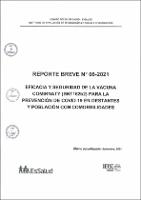 Reporte Breve N° 08-2021. Eficacia y seguridad de la vacuna Comirnaty (BNT162B2) para la prevención de Covid-19 en gestantes y población con comorbilidades