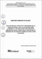 Reporte Breve N° 09-2021. Evaluación de la eficacia y seguridad de la dosis adicional con la vacuna BNT162B2 (Comirnaty), en población con respuesta inmunitaria inicial insuficiente que recibió el esquema de vacunación completa para Covid-19 en Perú