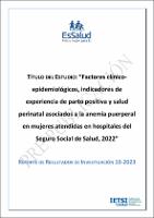Factores clínico-epidemiológicos, indicadores de experiencia de parto positiva y salud perinatal asociados a la anemia puerperal en mujeres atendidas en hospitales del Seguro Social de Salud, 2022. Reporte de Resultados de Investigación 10-2023