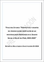 Perspectivas y desafíos del proceso de implementación de las investigaciones priorizadas en el seguro social de salud del Perú, 2023-2025”. Reporte de Resultados de Investigación 03-2024